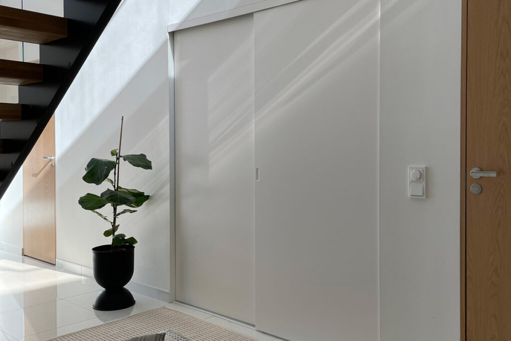 Liukuovissa voi valita eri tavoin käsiteltyjä laseja, levymateriaaleja sekä tietysti klassinen peilivaihtoehto. Ovien karmeja saa eri väreissä ja kokoluokissa, joten ovia voi häivyttää yhtenäiseksi ilmeeksi tai sitten korostaa jokaisen oven yksilöllisyyttä.